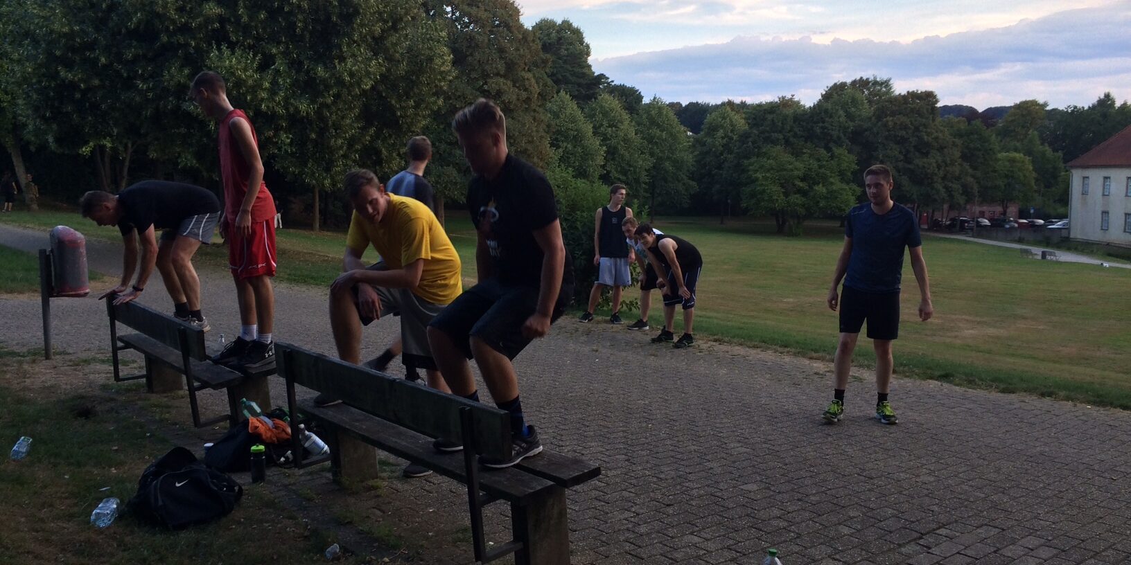 Die bisherigen Übungseinheiten fanden dagegen bislang meist unter freiem Himmel statt. Wechselweise arbeiteten die Spieler um Kapitän Lukas Erdhütter im Ennepetaler Dorma – Sportpark oder in den Anlagen um Schloss Martfeld in Schwelm. „Die Jungs haben einiges an Kilometern abgerissen und auch intensiv im Sprint – Ausdauerbereich gearbeitet. Sprungkrafttraining stand ebenso auf dem Programm. Mit dem bisher Erreichten muss ich wohl zufrieden sein, auch wenn ich mir natürlich – wie immer – mehr gewünscht hätte. Aber die Ferienzeit und das teilweise sehr warme Wetter haben die Coaches zu Kompromissen gezwungen,“ erklärt Trainer Martin Schrader.