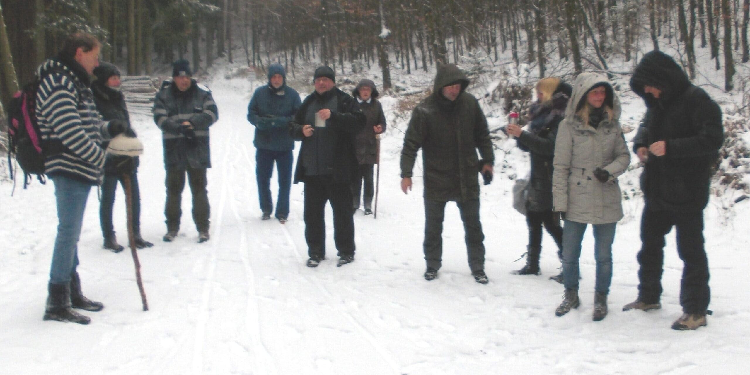 Das eisige Wetter hat den Wanderern nichts ausgemacht. Nach knapp drei Stunden waren die Wanderer mit einem leichten Eispanzer überdeckt. Zum Glück waren die Wege noch gut begehbar. Wieder am Ausgangspunkt freuten sich Alle auf das gemeinsame Grünkohlessen, mit 18 Teilnehmern, in den Bürgerstuben in Voerde.